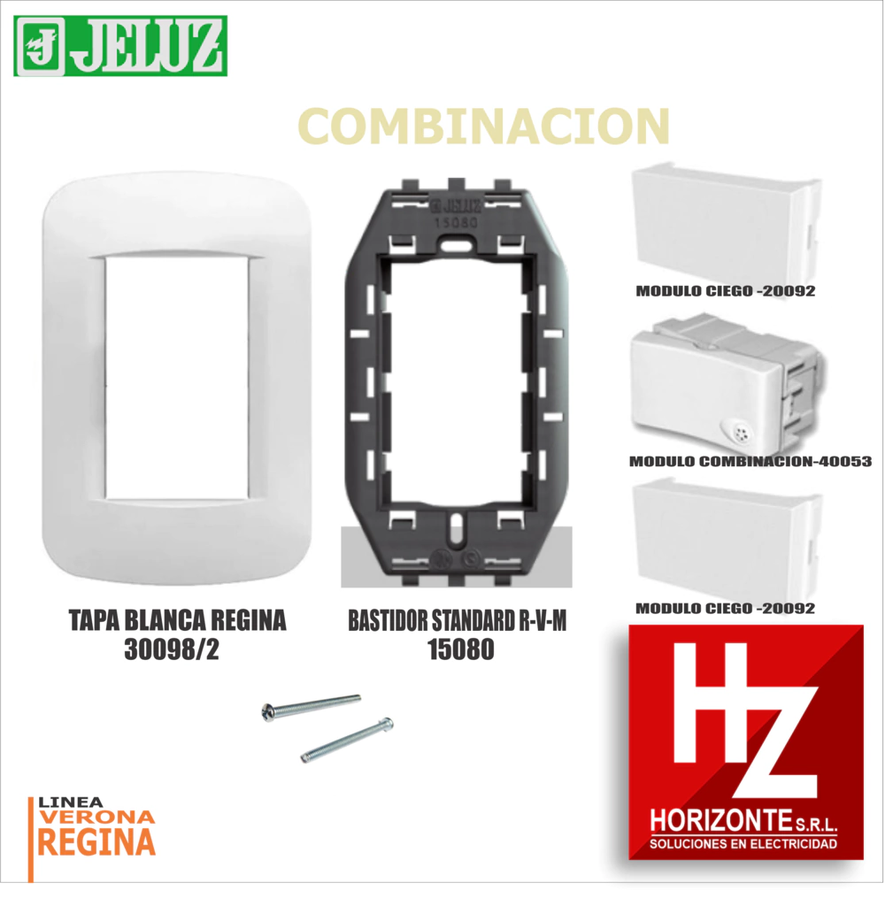 REGINA de JELUZ es un conjunto de módulos intercambiables, armados con bastidor portante y tapa color blanco, creado para interiores y exteriores. Para colocar en cajas rectangulares de 10x5cm. Completa, fácil y lista para conectar.